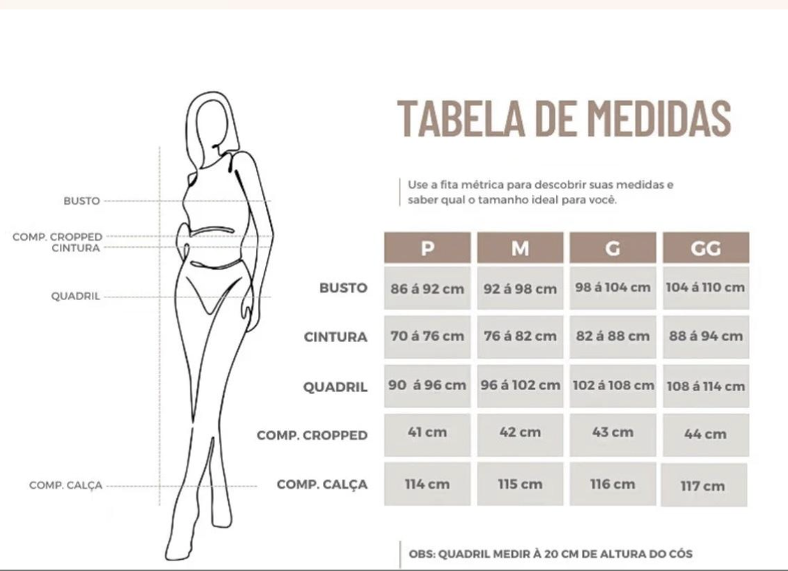 Referência: Modelo veste 38 e tem 1,67m de altura, usando tamanho P.